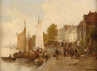 697Wagner, Karl 1839 Karlsruhe - 1923 DüsseldorfFischmarkt in Danzig. Signiert. Öl/Lwd./doubl., 73 x 100 cm 800 EUR |