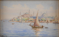 688Velten, Wilhelm 1847 St. Petersburg - 1929 MünchenDie Fährstation. Signiert. Öl/Holz, 16 x 24 cm 1500 EUR |