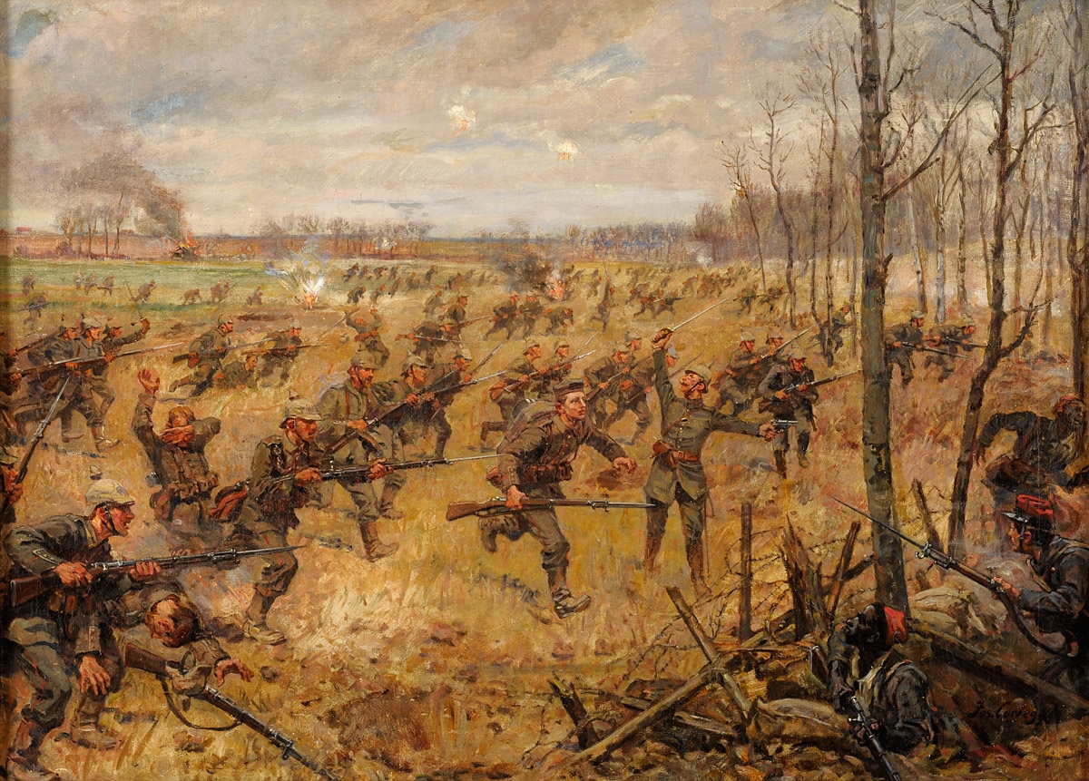 143Corregio, Joseph Kaspar 1870 Frankfurt a.M. - 1962 Frankfurt a. M. Deutsch-französisches Gefecht im I. Weltkrieg. Signiert. Öl/Lwd./doubl., 66 x 90 cm 300 EUR |