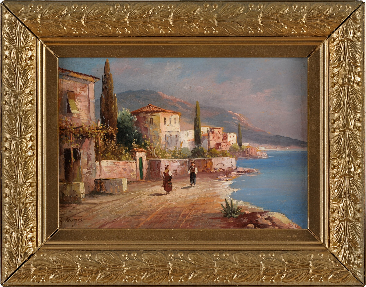 114André, Rudolf 1873 Kisber - 1920 Nürnberg Italienisches Fischerdorf. Signiert. Öl/Lwd., 50 x 62 cm 200 EUR |
