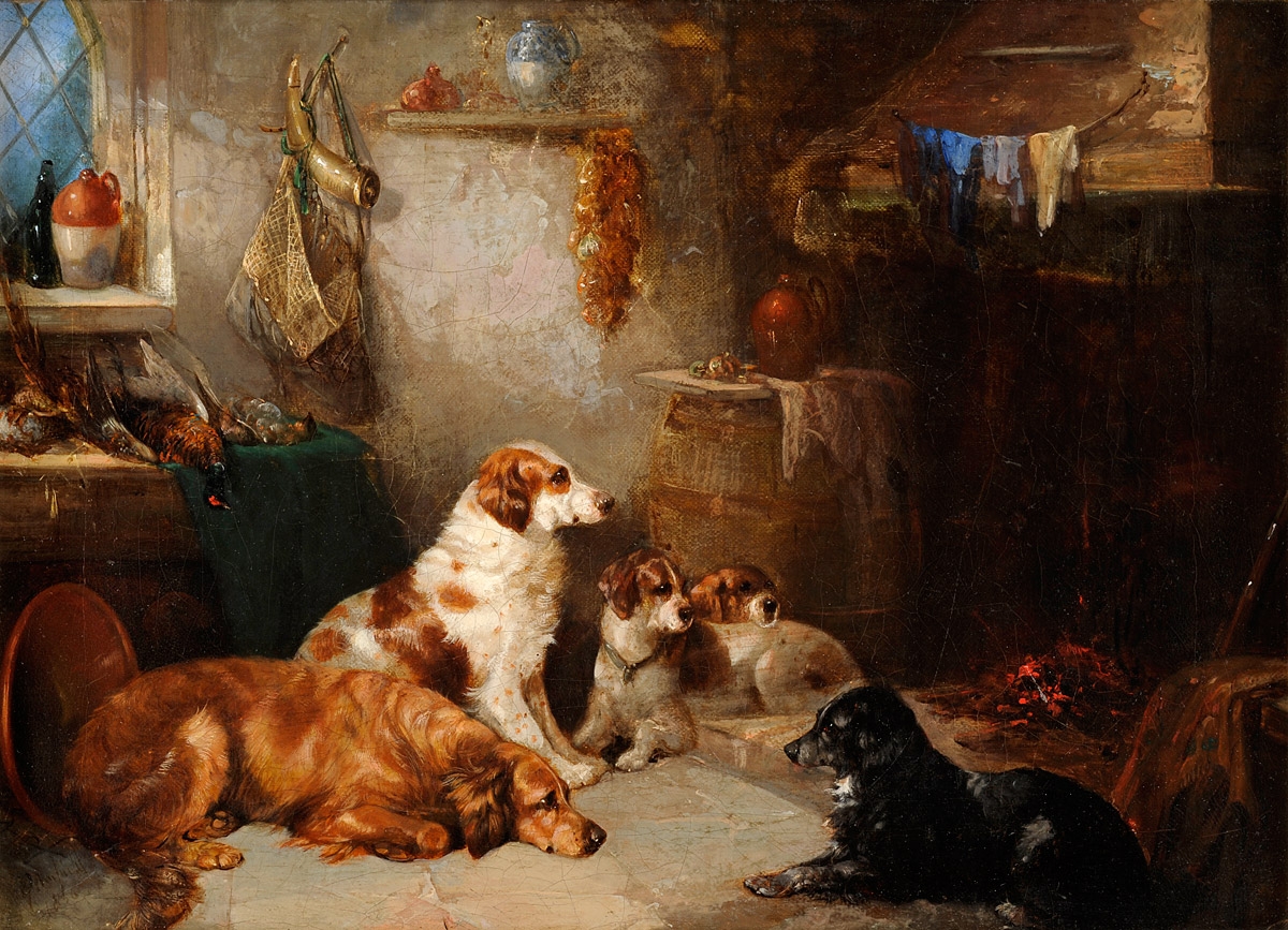 116Armfield, George 1808 Bristol - 1893 Clapham Nach der Jagd. Signiert. Öl/Lwd./doubl., 30 x 40 cm 300 EUR |