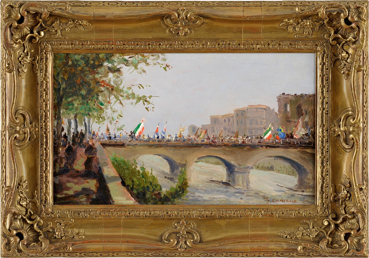 136Carcano, Filippo 1840 Mailand - 1914 Mailand Festlicher Umzug in Mailand. Signiert. Öl/Holz, 22,5 x 37 cm 600 EUR |
