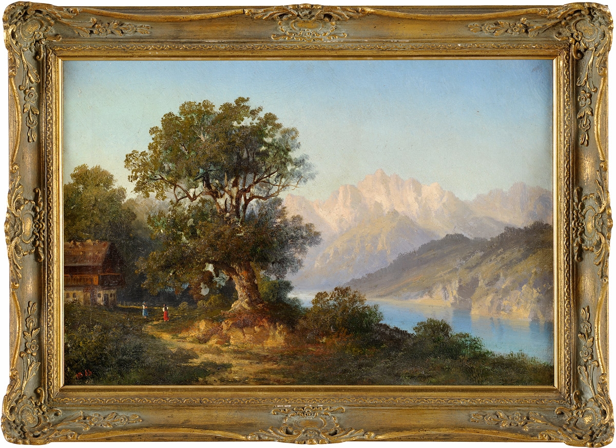120Bennekenstein, Hermann 1856 Berlin - 1877 Berlin Motiv aus Tirol. Monogrammiert. Rückseite betitelt. Öl/Lwd., 43 x 58 cm 300 EUR |