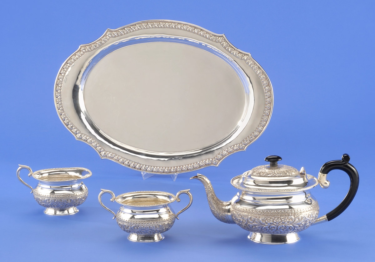 923Teeservice Vier Teile Reliefdekor im persischen Stil. Marken. 925-Feingehalt, zus. 2179 g. 300 EUR |