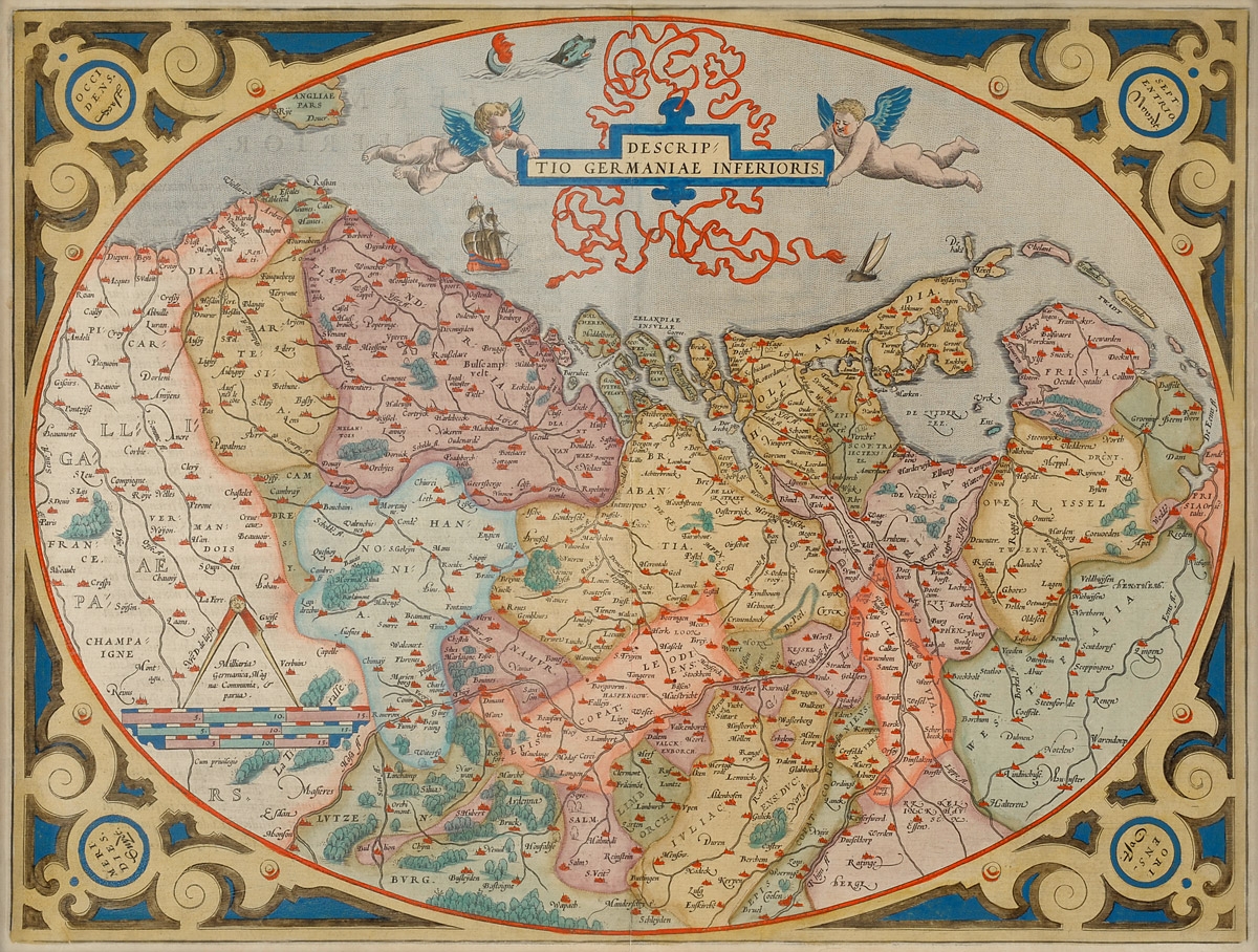 Sammlung von acht Kupferstich-Landkarten 17.- und 18. Jhdt. Handkoloriert. 64 x 78 cm (mit Rahmen) und etwas kleiner.