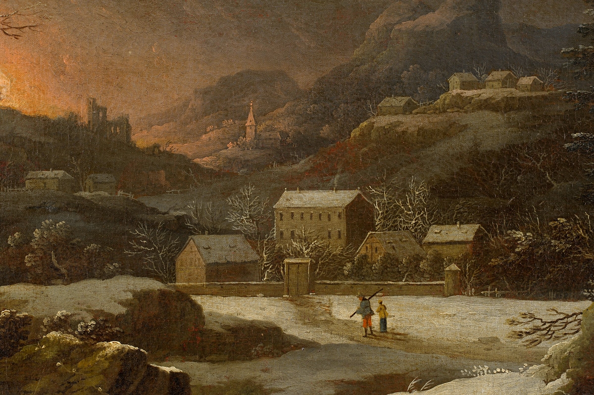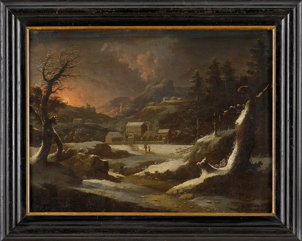 Undeutlich signiert 18. Jhdt. Winterlandschaft. Öl/Lwd./doubl., 60 x 80 cm