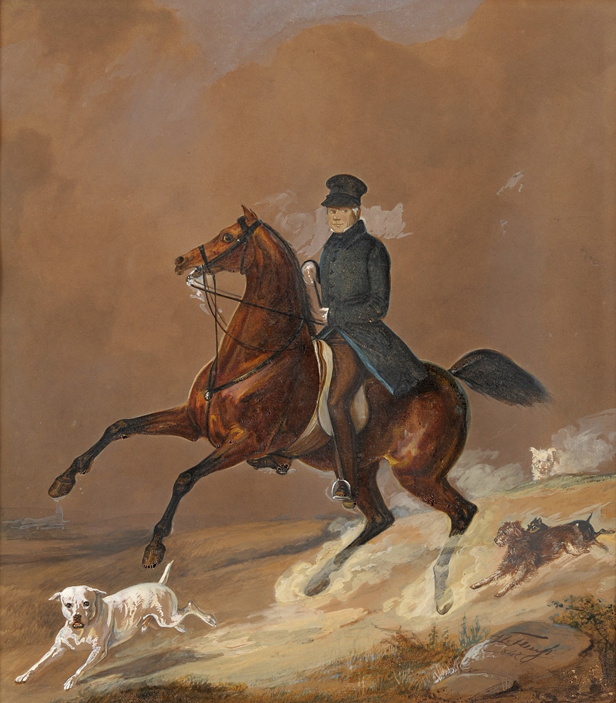 Fleuss, Henry J. geb. um 1800 Reiterportrait des Johann Peter Hause 1784 Crefeld-1849 Elberfeld. Signiert. Datiert 1842. Mischt., 46 x 40 cm