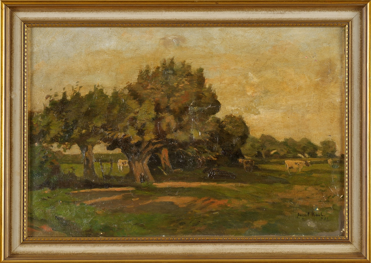 Georg Wolf 1882-1962 und Alfred Rasenberger 1885-1949 Pflügender Bauer. Rheinlandschaft. Signiert. Öl/Lwd., 27 x 36 cm bzw. 30 x 40 cm
