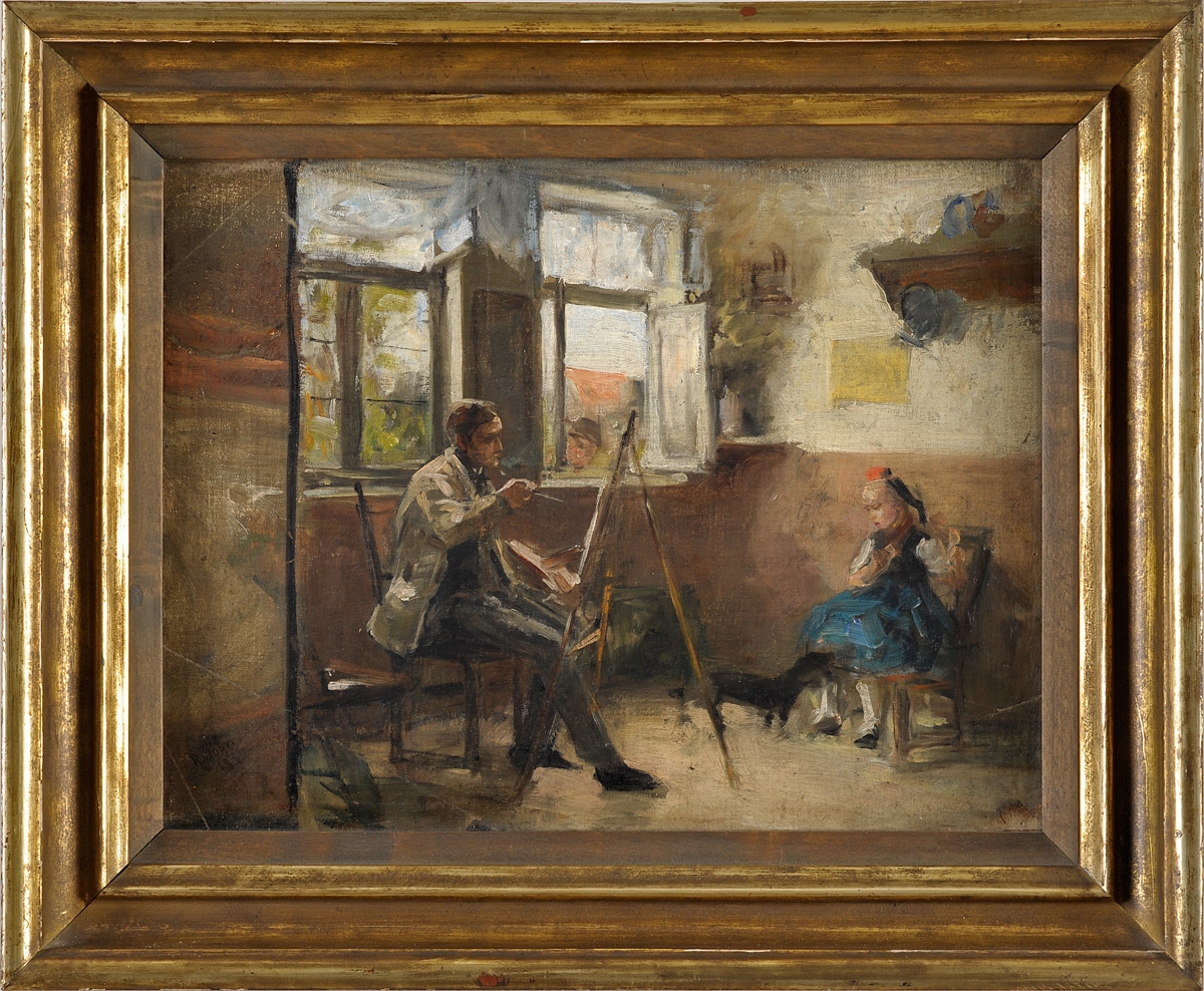 Erdmann, Otto 1834 Leipzig - 1905 Düsseldorf Eine hübsche Gitarrenspielerin. Signiert. Öl/Lwd./doubl., 40 x 30 cm