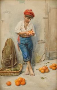 Fiorentino, Enrico Italien 19. Jhdt. Junge aus Sorrent. Signiert. Datiert: Sorrento 1909. Aquarell. 70 x 46 cm