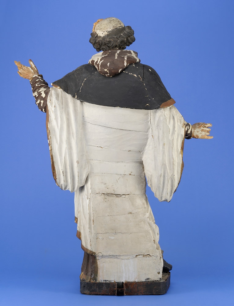 1484Heiliger Dominikus Süddeutsch oder Österreich 18. Jhdt. Vollrund geschnitzt. Alte Farbfassung und Vergoldung. H 113 cm 300 EUR |