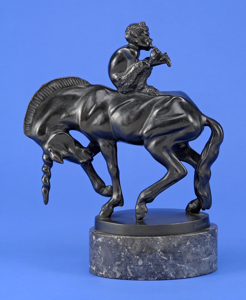 1480Guradze, Hans 1861 Kottulin - 1922 Berlin Junger Satyr auf einem Einhorn reitend. Bronze. Signiert. Marmorsockel. H 35 cm 400 EUR |