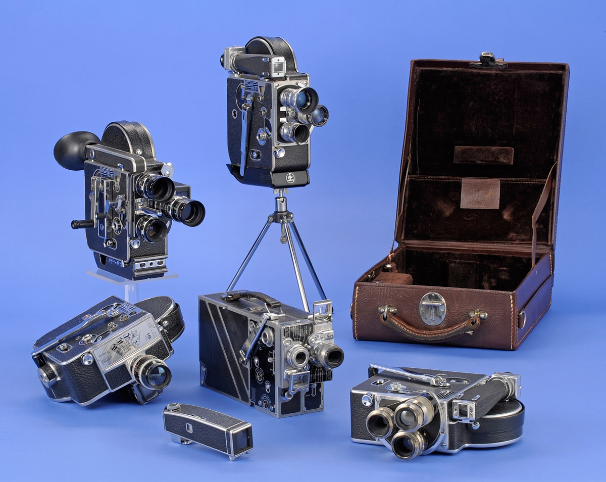 1458Fünf Schmalfilmkameras aus den 50er Jahren Ertee H 16 FR 25, Paillard-Bolex mit Koffer und Ministativ, Cine-Kodak Spezial USA by Eastmann und zwei Paillard-Bolex Filmkameras. 200 EUR |