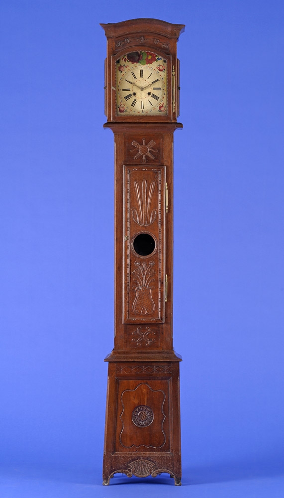 1522Standuhr Deutsch 18./19. Jhdt. Geschnitzter Eichenkorpus mit Pendelsichtfenster. Schwarzwälder Uhrwerk und bemaltes Zifferblatt. H 240 cm 200 EUR |