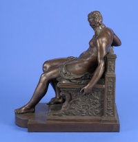 1561Undeutlich signiert 19. Jhdt. Frau der Antike mit Sohn. Bronze. Marmorplinthe. H 34,5 cm, B 31 cm, T 12,5 cm 450 EUR |