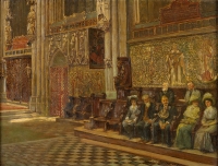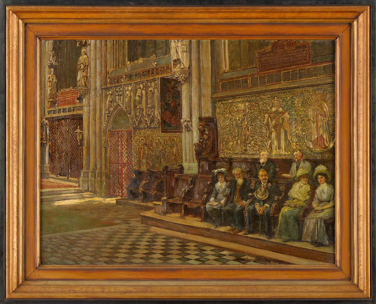 Leisten, Jacobus 1844 Düsseldorf - 1918 Düsseldorf Innenansicht des Xantener Doms St. Victor. Signiert. Rückseite betitelt. Öl/Lwd., 84 x 110 cm