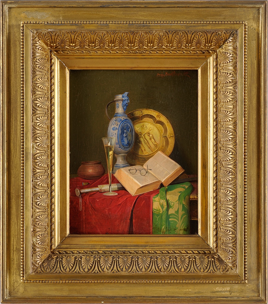 Mansfeld, Moritz Wien um 1850 - 1890 Zwei Gemälde. Stilleben. Signiert. Datiert 1880. Öl/Malk., 18,5 x 14,5 cm