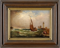 Meadows, Arthur Joseph 1843 London - 1907 London Etrétat Harbour. Signiert. Datiert 1888. Rückseite betitelt. Öl/Lwd., 25,5 x 36 cm