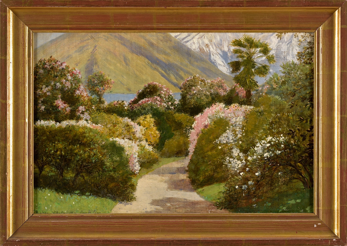 Öl/Lwd./doubl., 42 x 32 cm. Rückseite auf altem Klebezettel bezeichnet.