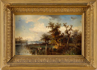 32André, Jules 1804 Paris - 1869 ebendaBewaldete Seenlandschaft mit Landvolk. Signiert. Öl/Lwd./doubl., 41 x 66 cm 200 EUR |