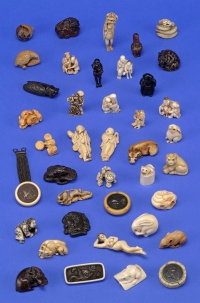 973Sammlung von 40 Netsuke u.a. Japan, 18.-20. Jhdt. Elfenbein, Holz u.a., zum Teil signiert. H 7,5 cm und kleiner 2000 EUR |