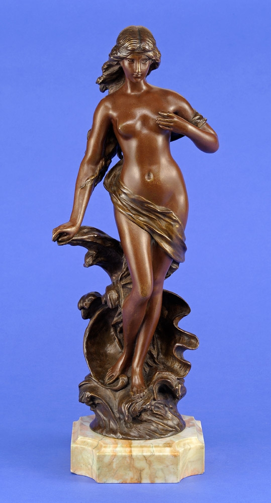 1055Drouot, Edouard 1859 Sommevoire - 1945 Paris Venus. Bronze. Signiert. Marmorsockel. H 57 cm (gesamt) 800 EUR |