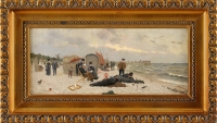 Mattschass, Erich Fr. K. 1866 Berlin - 1946 ebenda Ein Nachmittag am Strand. Signiert. Datiert 1888. Öl/Lwd., 26,5 x 61,5 cm