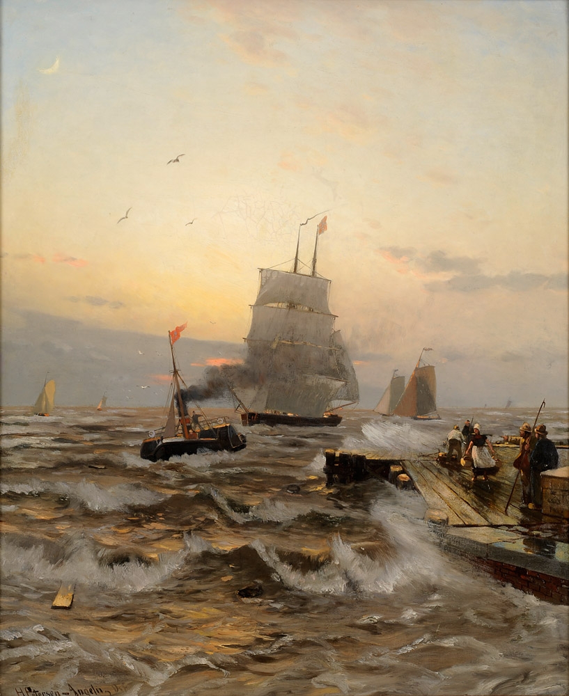 135Petersen-Angeln, Heinrich 1850 Westerholz/Angeln - 1906 Düsseldorf Auf der Mole. Signiert. Öl/Lwd./doubl., 72 x 56 cm 600 EUR |