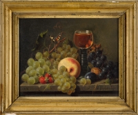 240Doppelmayr, Moritz 19. Jhdt. Früchtestilleben mit Weinglas. Signiert. Datiert 1876. Öl/Malk., 25 x 32 cm 150 EUR |
