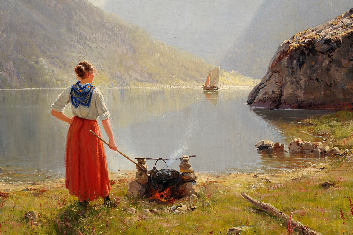 7Dahl, Hans Andreas 1881 Düsseldorf - 1919 Christiana Fjordlandschaft im Sommer. Signiert. Öl/Lwd./doubl., 127 x 102 cm 4000 EUR |