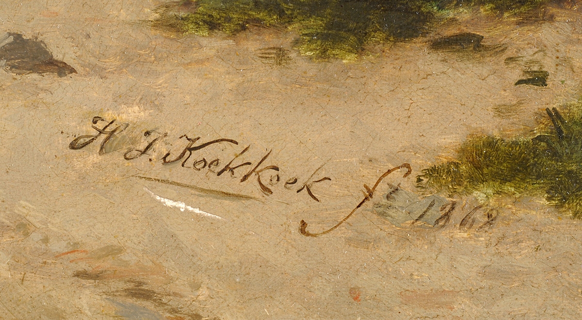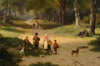 42Maler aus der Koekkoek-Familie Datiert 1868 Bewaldete Sommerlandschaft mit Landvolk. Signiert. Öl/Lwd./doubl., 65 x 97 cm 2500 EUR |