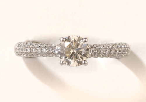 1279Perlcollier Zweireihig. 750-Weißgoldschließe, zentraler Brillant, ca. 1,20 ct und kl. Diamanten. L 50 cm 2500 EUR |