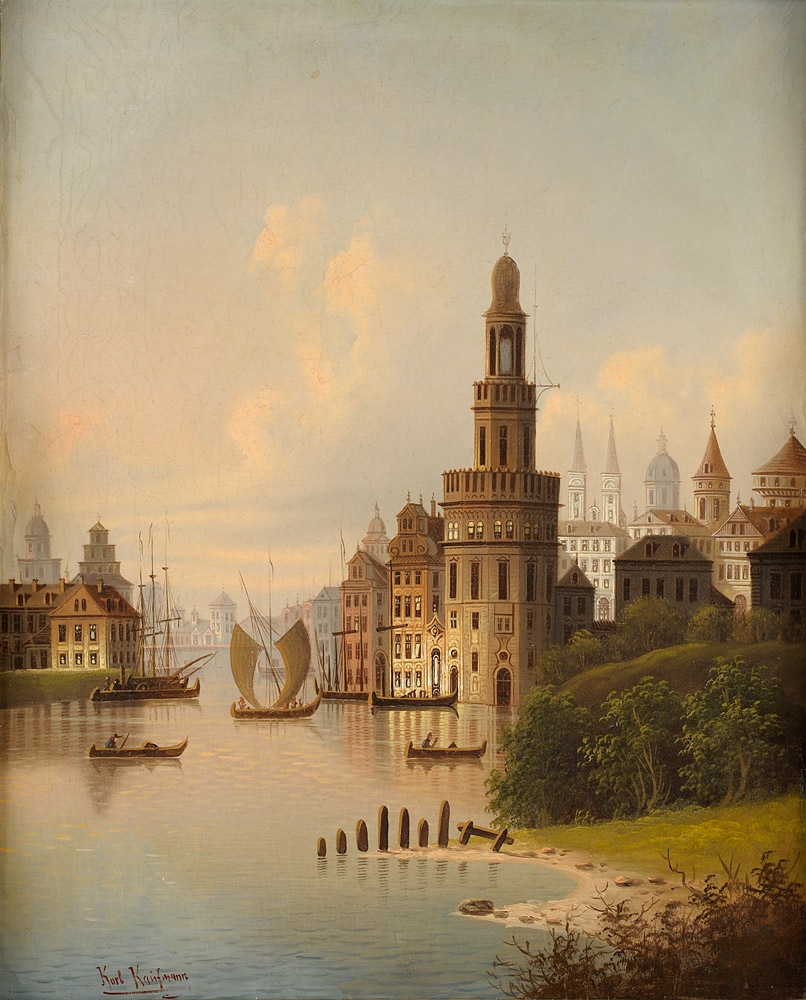 390Kaufmann, Karl 1843 Neuplachowitz - 1902 Wien Stadtansicht. Signiert. Öl/Lwd., 68 x 55 cm 300 EUR |