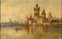 374Meyerheim, Paul Wilhelm 1842 Berlin - 1915 Berlin Die Altstadt von Lindau am Bodensee. Signiert. Öl/Lwd., 24 x 18 cm 350 EUR |