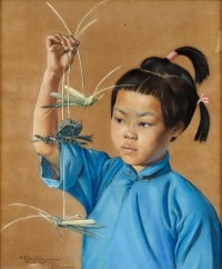 368Podgoursky, Victor Stepanovich 1893 Ket Narym Krai - 1969 Taschkent Chinesisches Mädchen mit aus Gras gebastelter Heuschrecke und Fröschen. Signiert. Datiert 1939. Pastell. 54 x 45 cm 1500 EUR |