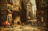 387Kaufmann, Karl 1843 Neuplachowitz - 1902 Wien Mittelalterliche Stadtansicht. Signiert: van Hove. Öl/Lwd., 70 x 106 cm 200 EUR |
