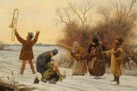 351Streitt, Franciszek 1839 Brody - 1890 München Polnische Musikanten im Winter. Signiert. Öl/Holz, 22 x 42 cm 1500 EUR |