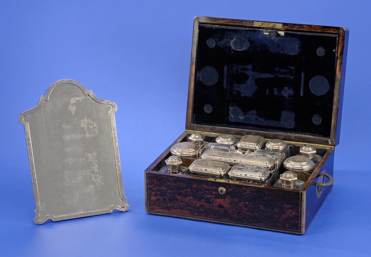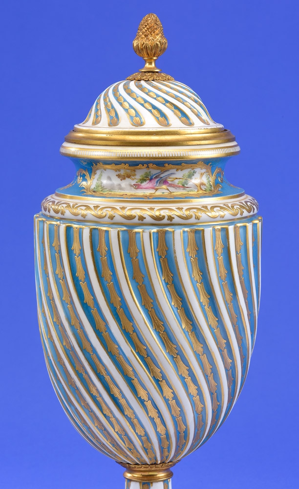 815Chocolatiere von Tabouret & Doin Paris, zweite Hälfte 19. Jhdt. Im Stil des 18. Jhdt. Vergoldet. Ebenholzgriff. Punzen. H 20,5 cm, 462 g. 200 EUR |