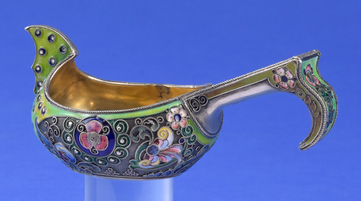 1419Satz von 12 feinen Emaille-Kaffeelöffeln vom Meister V.A. Russland 1900 250 EUR |