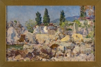 Signiert. Öl/Holz, 17,5 x 23 cm. Rückseite mit eigenhändiger Bestätigung des Künstlers.
