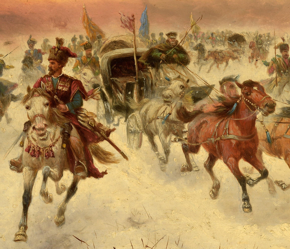 Polnischer Reitertrupp im Winter.