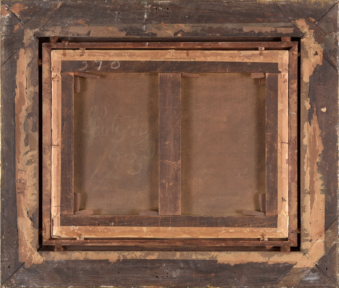 Auf dem Keilrahmen betitelt und alter Inventaraufkleber. Öl/Lwd./doubl., 114 x 92 cm.
